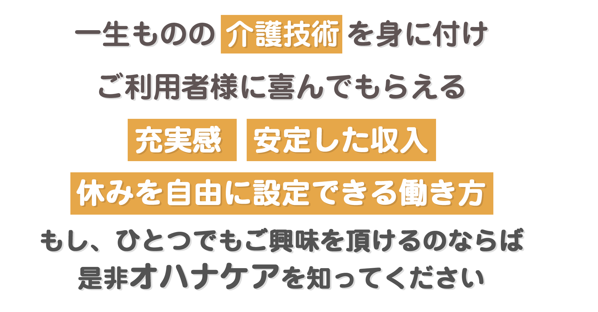 私たちオハナ・ケアサービスは、「介護未経験者でも可」ではなく「介護未経験者の方も大大大歓迎なのです」