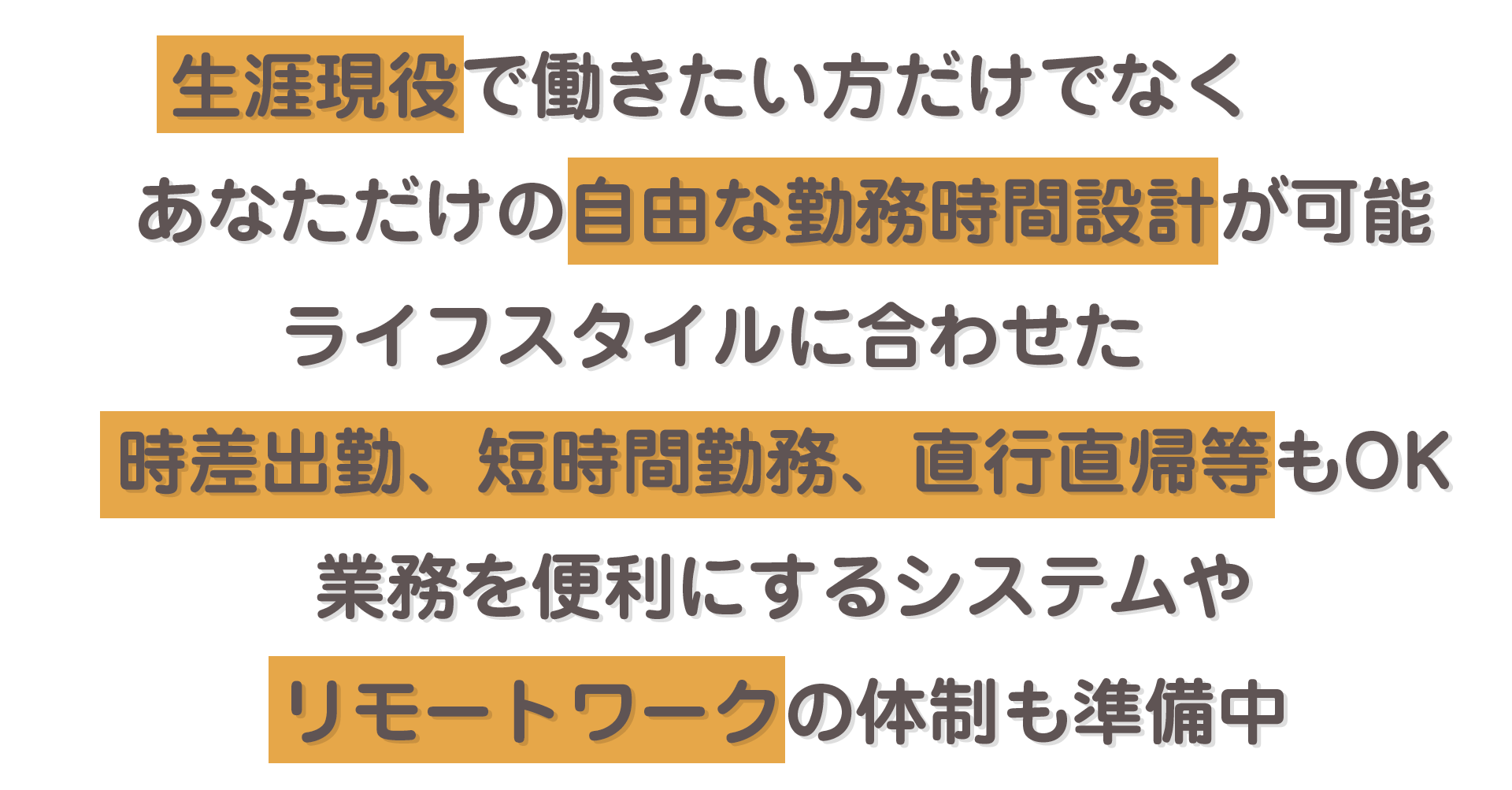 もう一度働きたいと思っていらっしゃる方など是非お問い合わせ下さい。
