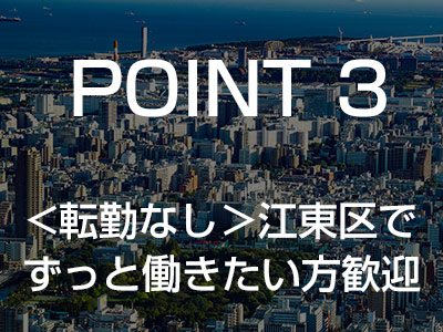 現在、「東陽町」「大島」「門前仲町」の駅近3つの支店から、江東区内の常時約300名のご利用者様の生活を支える役割を担っております。